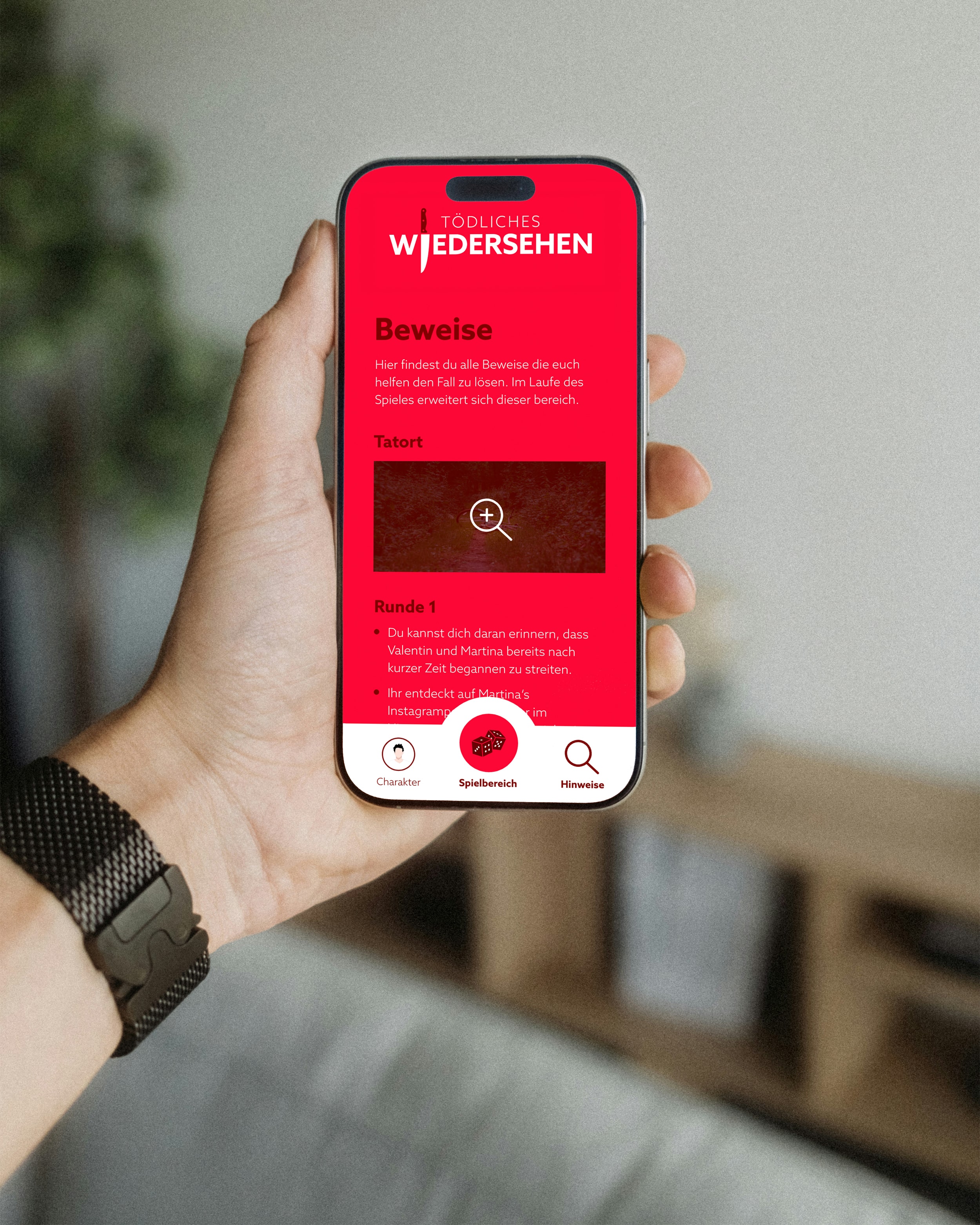 Das endgültige Erlebnis verbindet Print und Digital: Kund:innen erhalten ein Mailing mit Zugangscode, planen einen Spieltermin und jede der vier Rollen erhält persönliche Charakterinformationen. Während des Treffens führt die Webapp in mehreren Runden durch das Krimidinner, öffnet neue Hinweise und mündet in einer gemeinsamen Verdächtigenwahl – bevor die Auflösung präsentiert wird. Die vielen Stunden, die Liebe zum Detail und die Freude der Kund:innen haben das Projekt zu einer meiner intensivsten und lehrreichsten Erfahrungen gemacht.